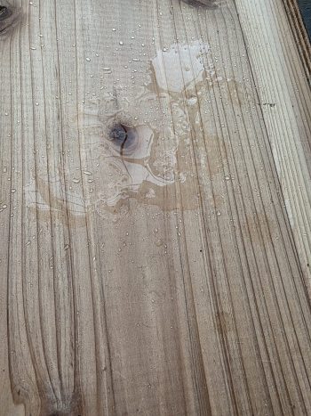 施工後数ヶ月経過している杉板のクリア塗装有りですがしっかりと水弾きしていますね。